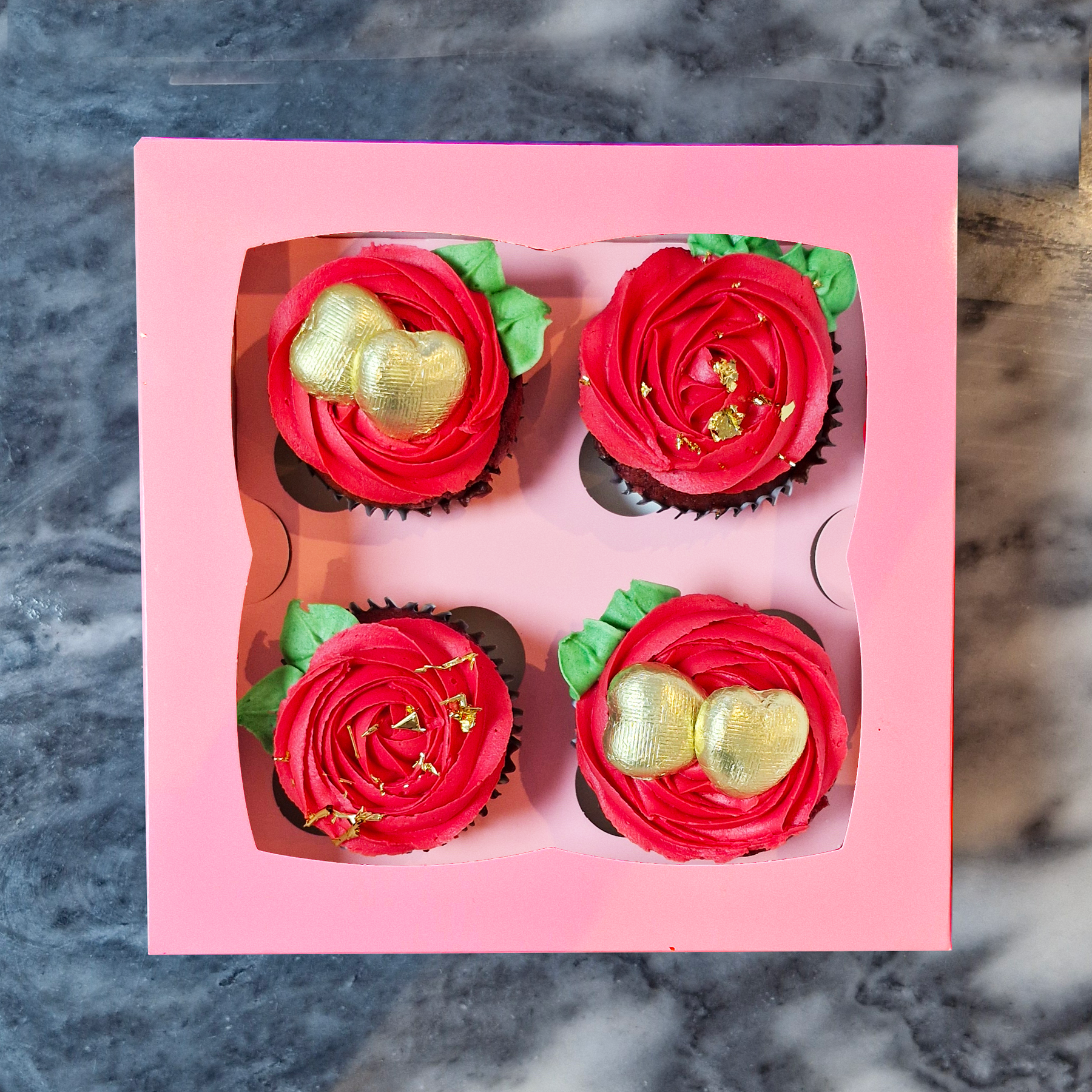 4 Red Rose Cupcakes
