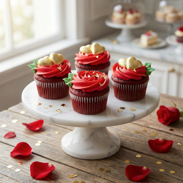 Make this Valentine's Day unforgettable with our 4 Red Rose Cupcakes—a refined gift that speaks volumes. This curated selection pairs two sumptuous chocolate cupcakes with two classic red velvet varieties, each topped with a striking red rose. Crafted with precision and premium ingredients, every cupcake delivers exceptional taste and visual appeal.
