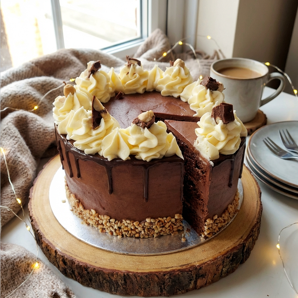 Nutella Cake - Three-layered Nutella Chocolate Cake with Italian Meringue frosting is a show-stopping dessert that’s perfectly nutty, moist, and de... read full description