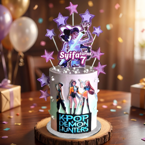 Celebrate your passion for K pop Demon Hunters with this expertly crafted cake. Featuring delicious flavours tailored to delight your taste buds, the K pop Demon Hunters Cake is perfect for fans. Its design captures the spirit of Demon Hunters, making it an ideal centerpiece for fan events or special occasions. Enjoy a cake that combines great taste with fandom flair.