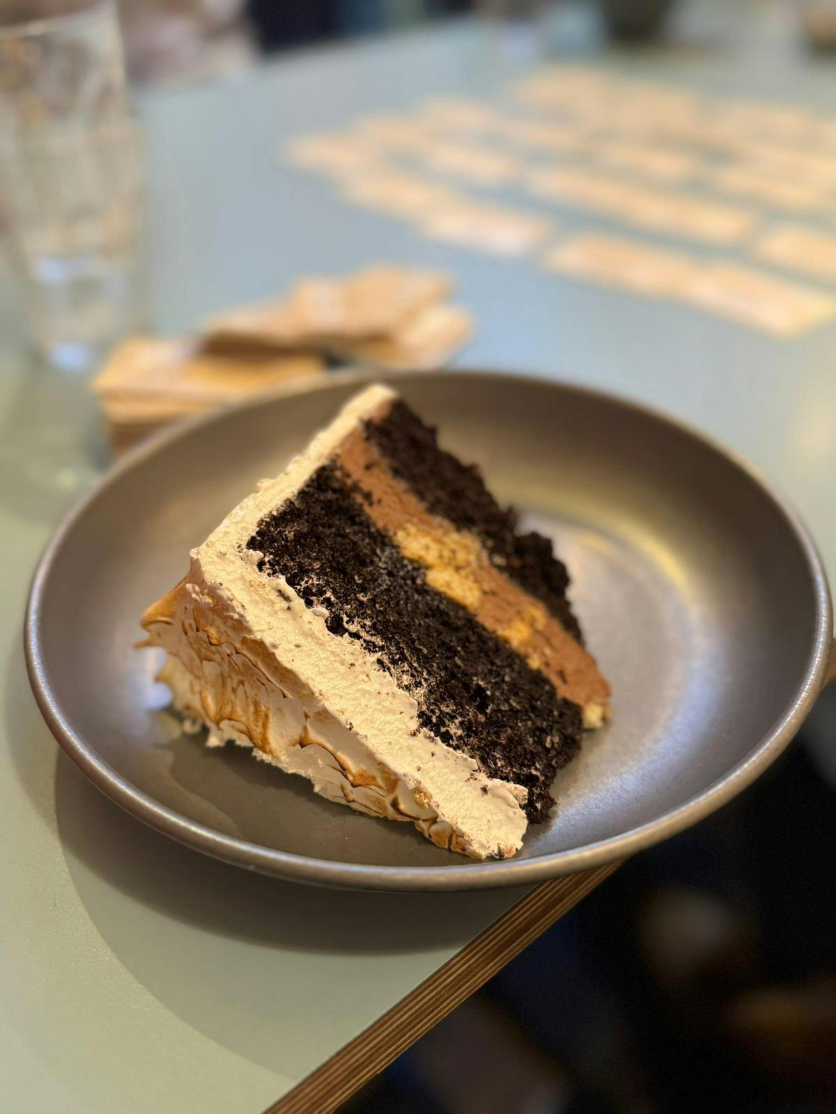 Smores Cake gives you the delicious taste of classic campfire smores in a cake form. It features a moist and fluffy cake base, topped with a layer of meringue and crunchy digestive pieces for a delightful treat. Enjoy its luscious flavor and texture!