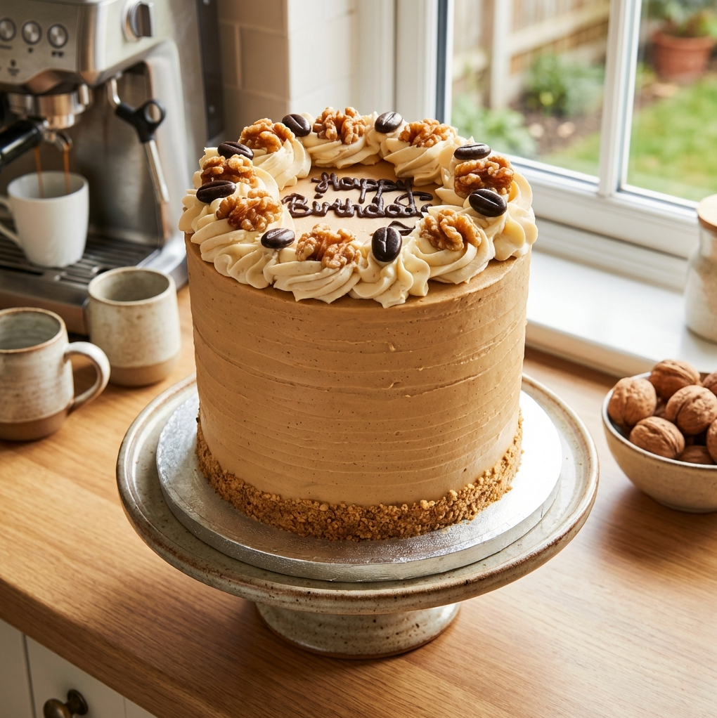 Discover your new favourite indulgence with DidiCakes Bath's exquisite Coffee & Walnut Cake. Perfectly crafted for those who appreciate life's finer, sweeter moments, this cake is a sophisticated treat designed to elevate any occasion. Whether it's a relaxed afternoon tea, a thoughtful gift, or a delightful centrepiece for your next gathering, it promises pure bliss in every bite.